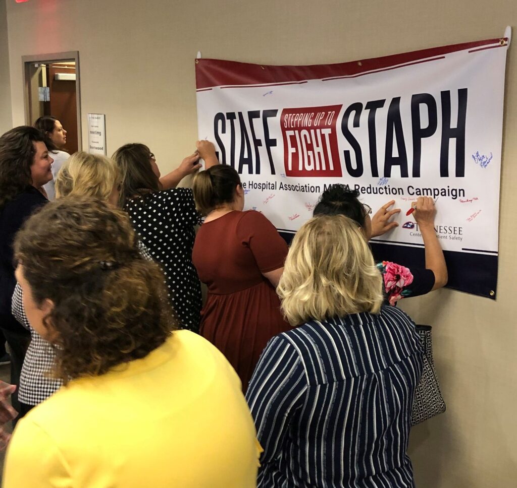 According to the Centers for Disease Control and Prevention (CDC) healthcare-associated infections (HAIs) pose a significant threat to patient safety with an incidence of approximately 4.5 HAI for every hospital admission. The Agency for Healthcare Research and Quality (AHRQ), says that over a million HAIs occur across U.S health care systems every year leading to the loss of thousands of lives and adding billions of dollars to health care costs. Common HAIs include but are not limited to infections acquired from the use of invasive devices such as catheters and ventilators or procedures used to treat patients. Tennessee Center for Patient Safety works with hospitals across the state to implement practices to reduce the risk of these HAIs including central-line associated bloodstream infections (CLABSI), catheter-associated urinary tract infections (CAUTI), ventilator-associated pneumonia, multi-drug resistant organisms (MDROs) such as methicillin resistant Staphylococcus aureus (MRSA), surgical site infections (SSIs) and other infections.